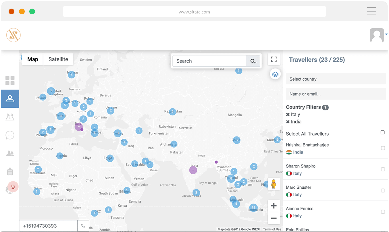 Sitata's operations dashboard, Radar, is used by travel managers, human resources, and security team to identify staff locations during an emergency without invading privacy.